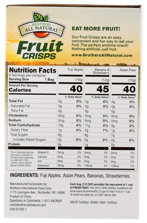 BROTHERS ALL NATURALOut of stockFuji Apples, Asian Pears and Strawberry Banana, what could be a better combination? Our variety pack has all three! Brothers All Natural Fruit Cris...