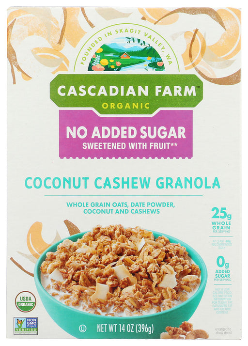 CASCADIAN FARMOut of stockThe rich, sweet flavor of dates give our organic Coconut Cashew Granola just the right hint of sweetness without any added sugar or artificial swee...