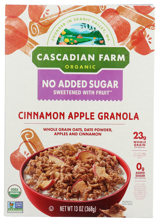 CASCADIAN FARMOut of stockThe rich, sweet flavor of dates give our organic Apple Cinnamon Granola just the right hint of sweetness without any added sugar or artificial swee...