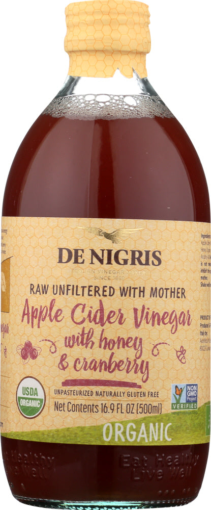 DE NIGRISOut of stockorganic, raw, unfiltered apple cider vinegar with a 10% honey blend and cranberry. the perfect way to get your daily dose and reap the health benef...