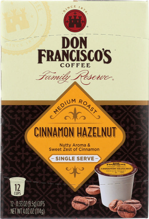 DON FRANCISCOS COFFEE: Medium Roast Cinnamon Hazelnut Single Serve 12 pods, 4.02 oz