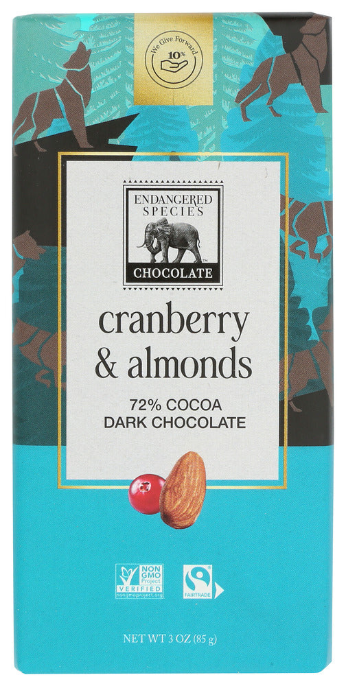 ENDANGERED SPECIES: Dark Chocolate Bar with Cranberries & Almonds, 3 oz